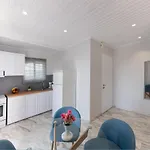 Οι ανέσεις της κουζίνας περιλαμβάνουν ψυγείο, πλυντήριο ρούχων και γυάλινα σκεύη.